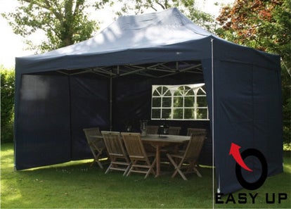 - De easy up partytent 9x4,5 m. bestaat uit 3 tenten van 3x4,5 m.
