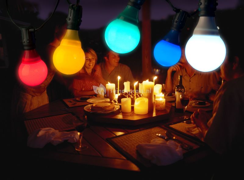 - De prikkabel is in principe voorzien van warm witte lampen en of 5 kleuren.